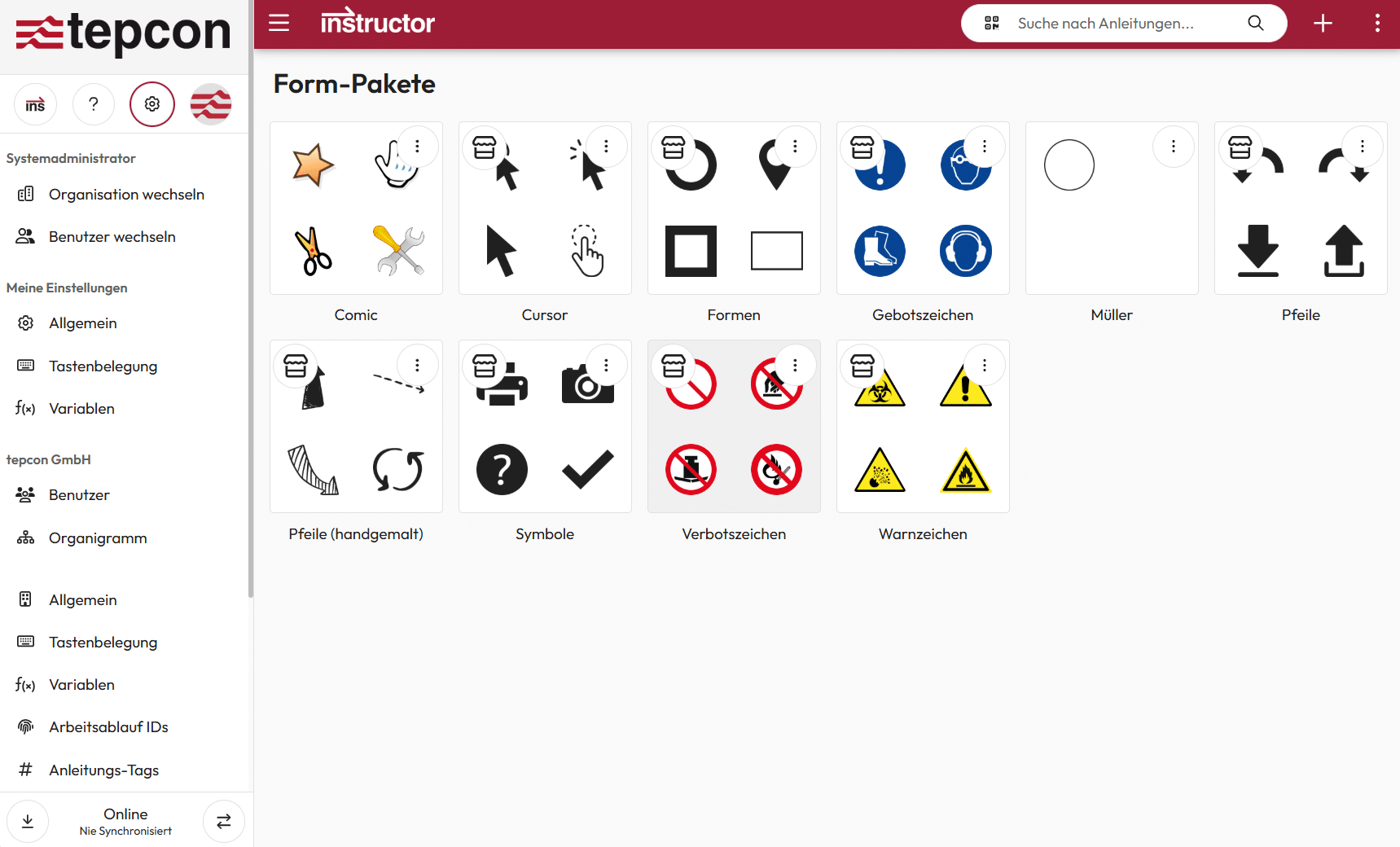 Darüber hinaus lassen sich auch Gebots-, Warn- und Gefahrensymbole bequem über die Formen organisieren.