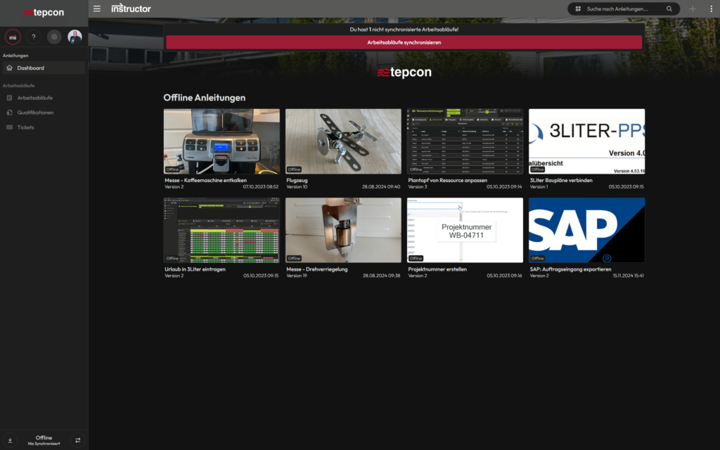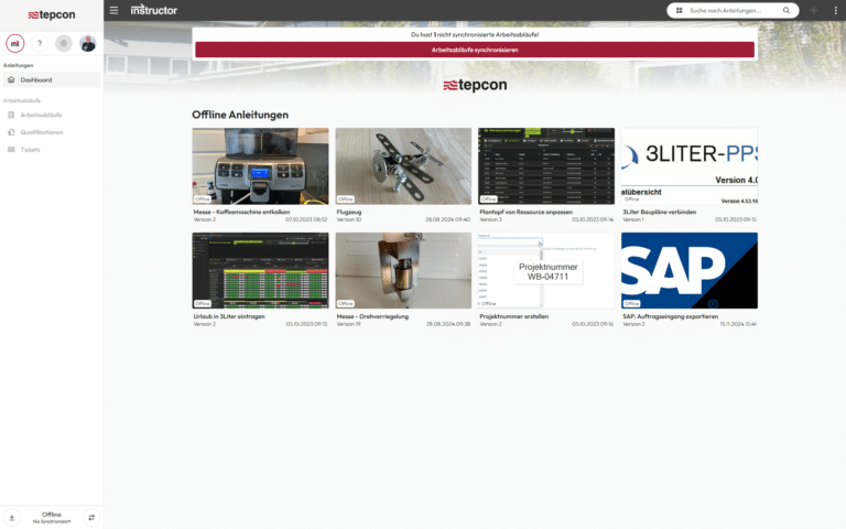 Instructions and work instructions can be specifically marked for offline use and downloaded to mobile devices. This means that all important information remains available at all times.